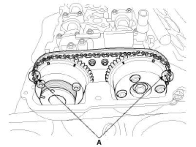 Before removing the timing chain, mark the RH/LH timing chain with an identification based on the location of the sprocket because the identification mark on the chain for TDC (Top Dead Center) can be erased.