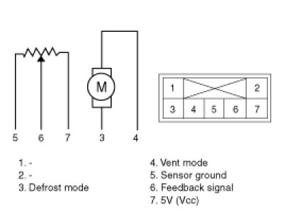 3. Verify that the mode control actuator operates to the defrost mode when connecting 12V to the terminal 3 and grounding terminal 4.