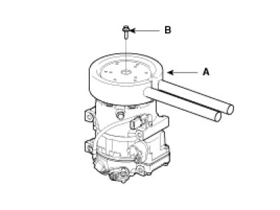 2. Remove disk from pulley to clockwise after set special tool (B) in hall of disk upper part after remove center bolt (A).