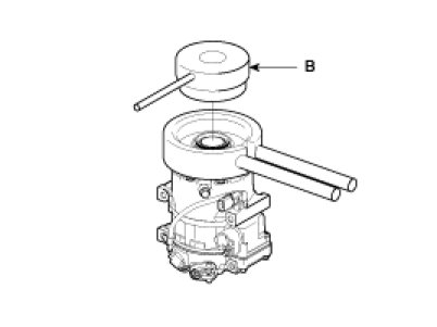 - Be careful not to damage the pulley (B) and compressor during removal/installation.