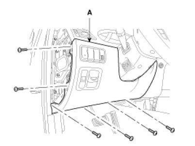 3. After loosening the crash pad lower panel mounting screws, then remove the lower panel (A).