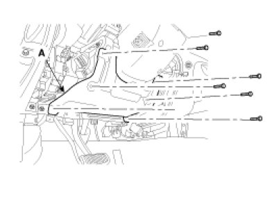4. After loosening the mounting bolts, then remove the reinforcing panel (A).