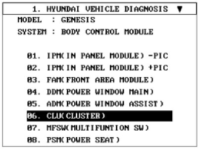 1. It will be able to diagnose defects of cluster (CLU) with scan tool quickly. Scan tool can operates actuator forcefully, input/output value monitoring and self diagnosis.