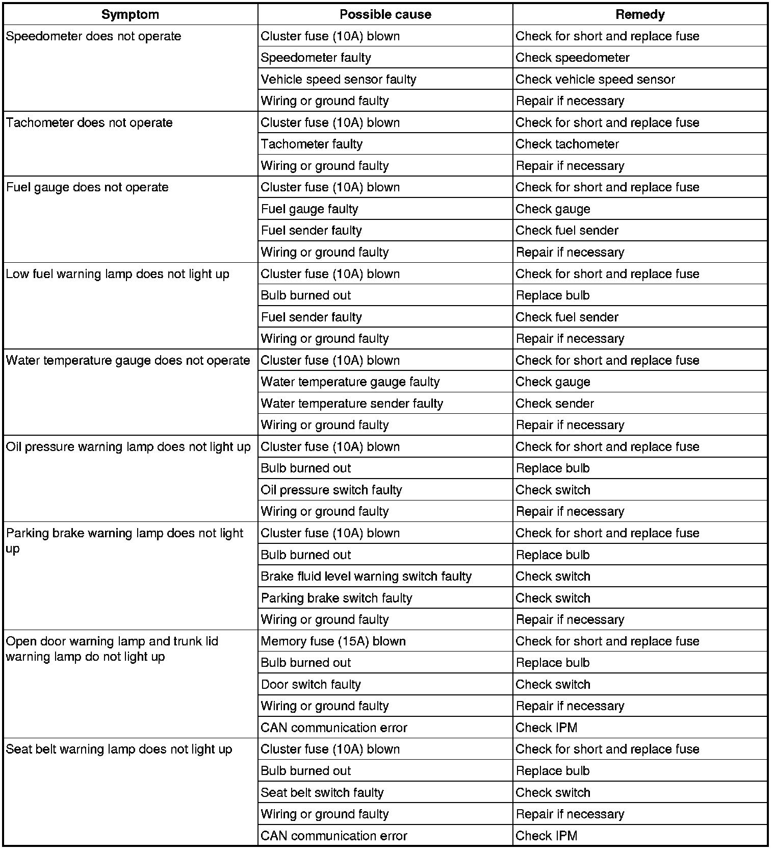 Instrument Panel, Gauges and Warning Indicators: Testing and Inspection