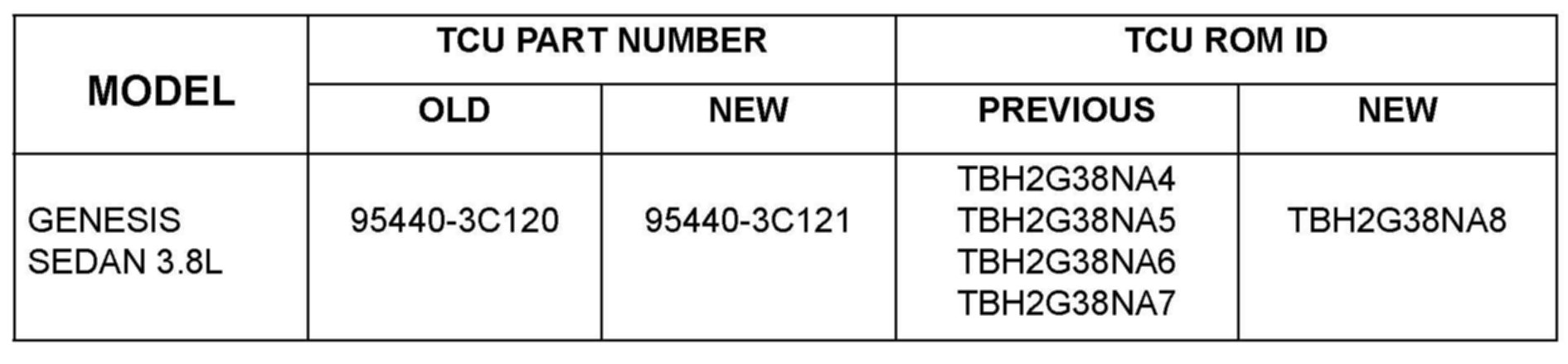 This TSB provides the procedure to update the Transmission Control Module with the most recent calibration for 2009 Genesis Sedan 3.8L V6 vehicles to reduce vibration or shudder from the automatic transmission during light acceleration from 50-62 mph.