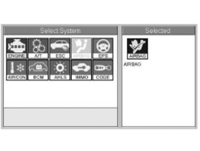2. Ignition "ON" & Engine "OFF", select Airbag system and "PODS Reset" mode.