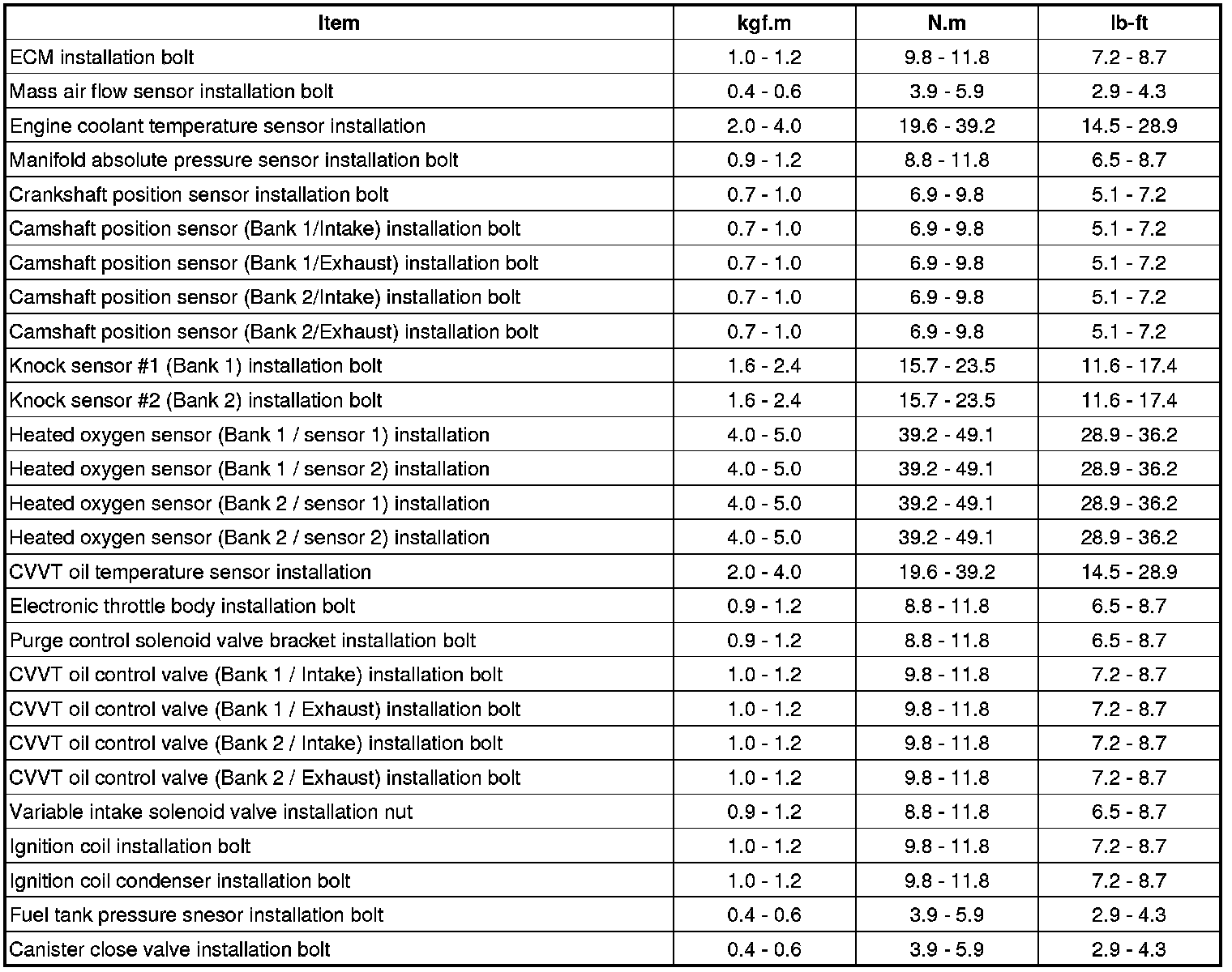 Tightening Torques