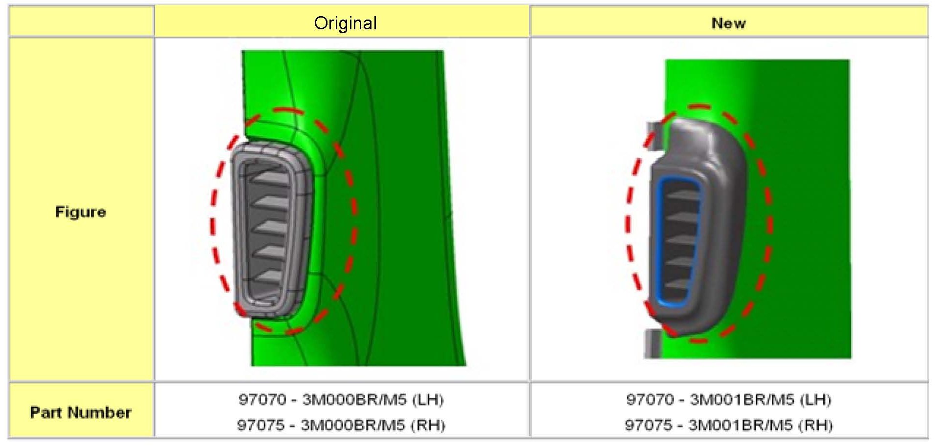 Original style air vents have been discontinued as service parts. If the original style left or right vent needs to be replaced, replace both sides with new style air vents at the same time to maintain matching appearance.