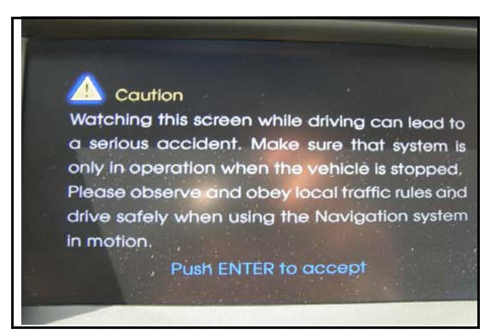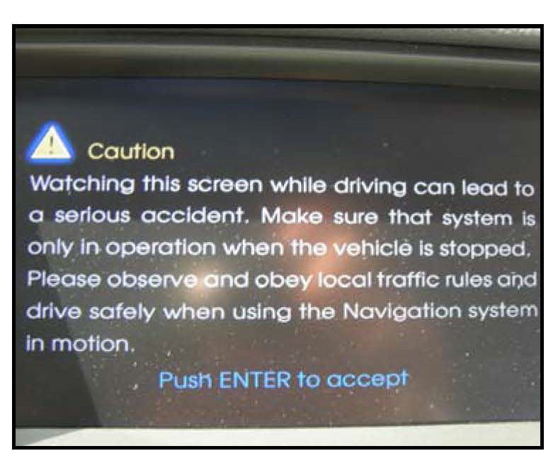 30. The caution screen disclaimer will be displayed. Press the CCP down to acknowledge the disclaimer.