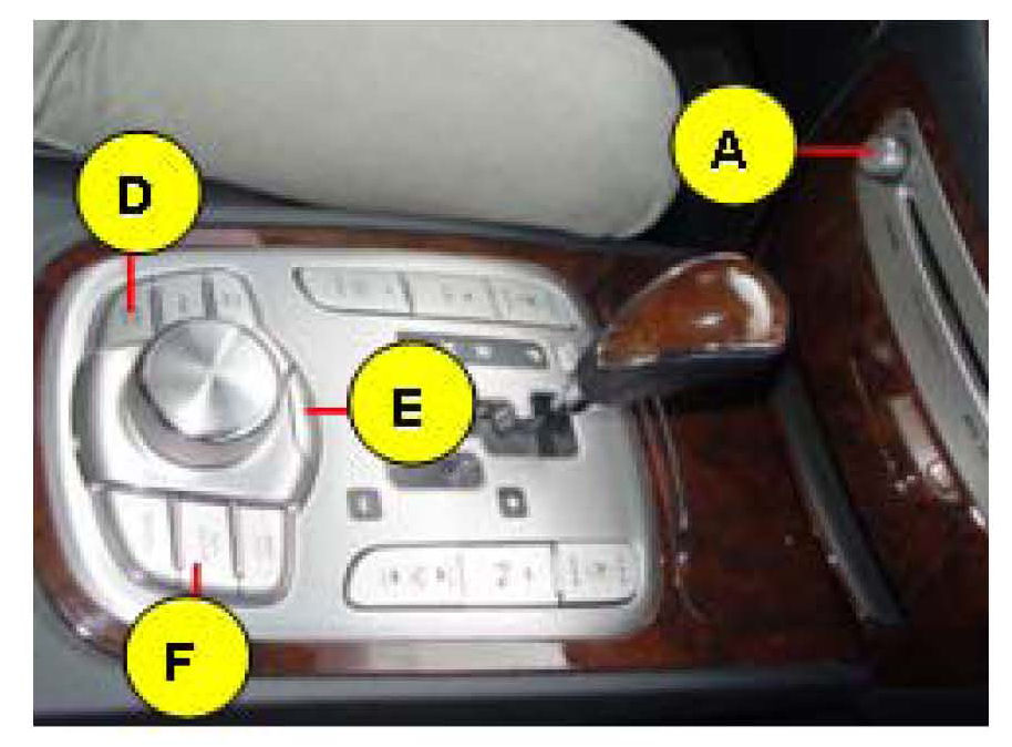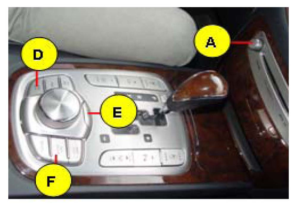 16. Enter the 51W update menu by simultaneously pressing the [D] DISC/AUX, [E] BACK, [F] NAVI/ MENU buttons while pressing the [A] VOL KNOB.
