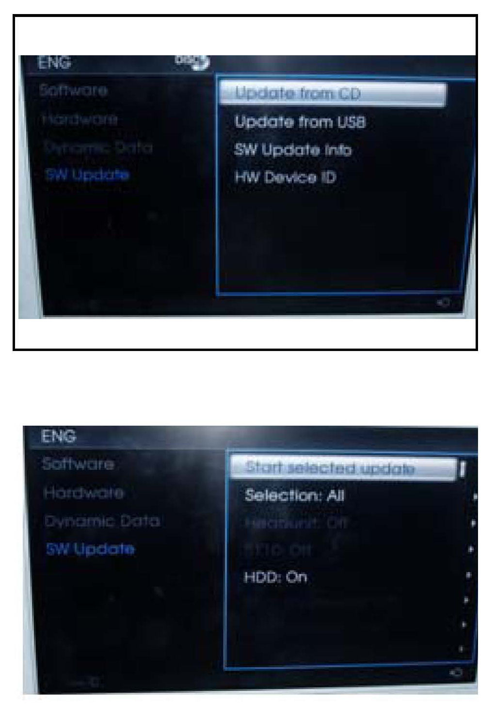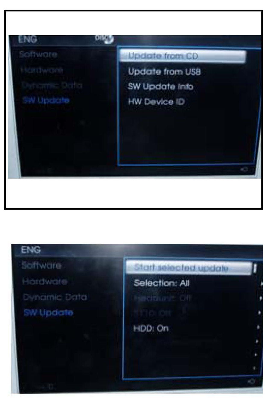 18. Highlight "Update from CD" and press the CCP down. Then select "Start selected update".