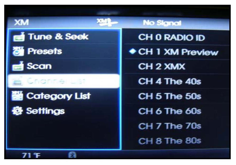 --> Check whether an XM station is correctly playing and whether the correct channel name displays on the upper status bar.