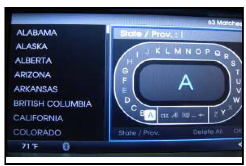 ^ From the Smart Speller, jog the dial down to highlight STATE/PROV. Press the CCP knob down.