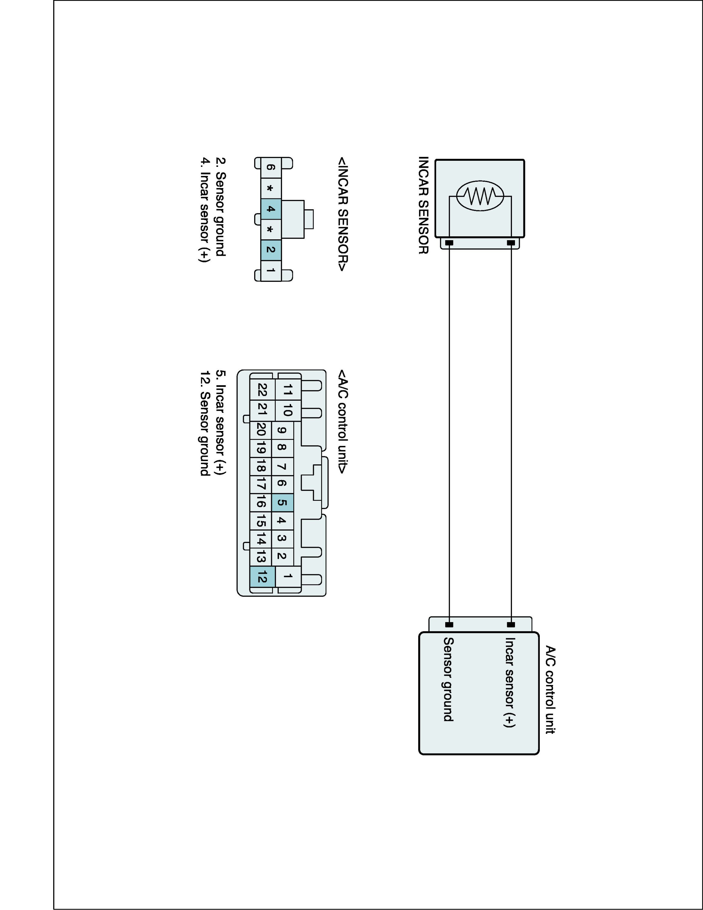 Incar sensor is located at left side of DATC control panel. It contains a thermistor which measures the temperature of the inside. The signal, decided by the resistance value which changes in accordance with perceived inside temperature, is delivered to heater control unit. According to this signal, the control unit regulates incar temperature to intended value.