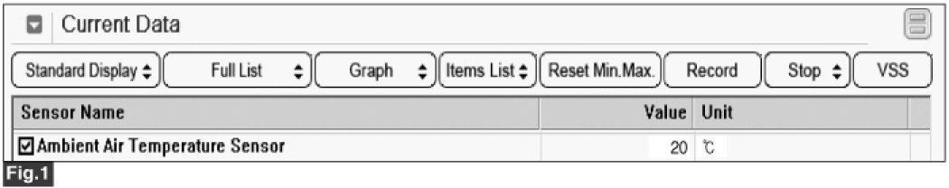 FIG. 1) Parameter of "Ambient Sensor" will be fixed at 20 °C (68 °F), if there is any fault in Ambient Sensor.