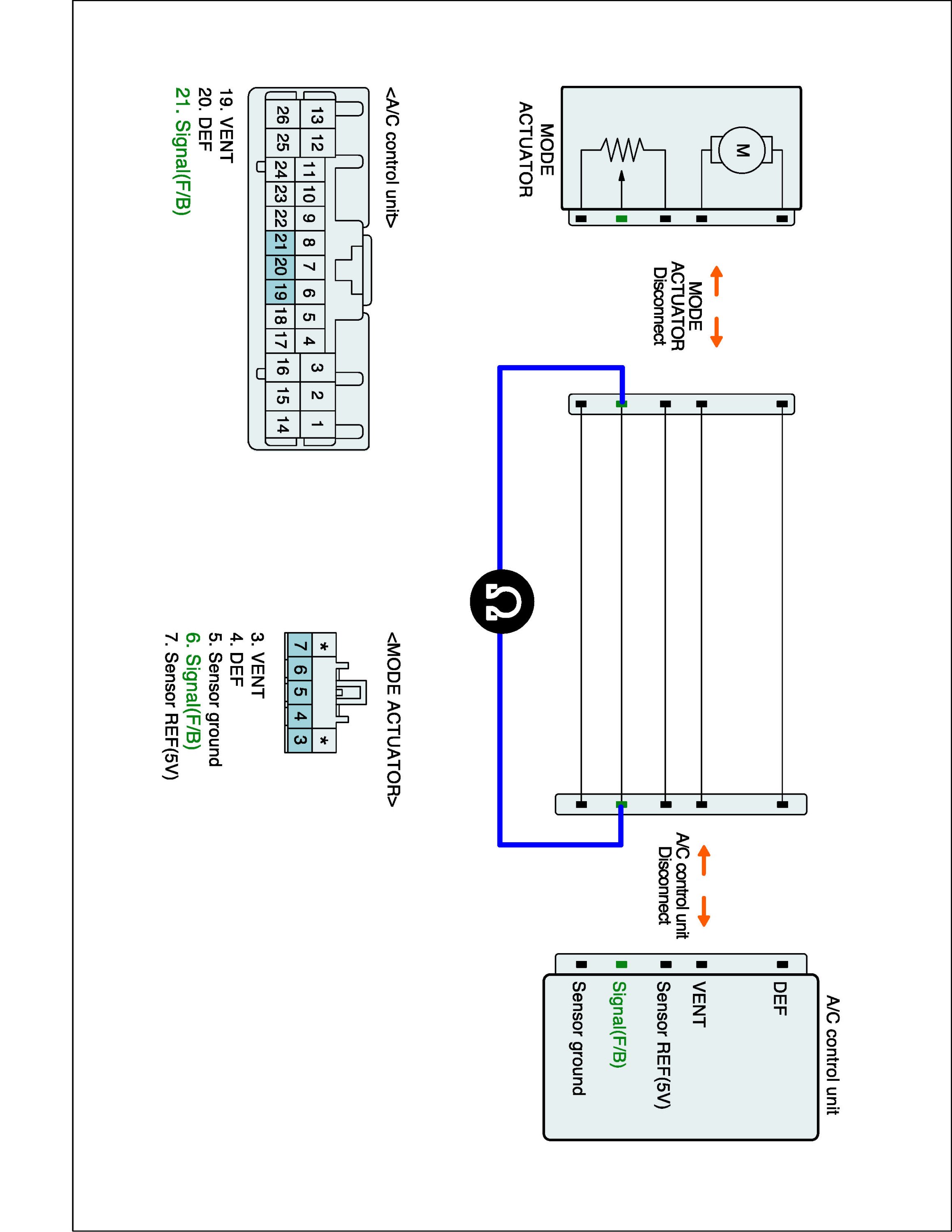 2. Disconnect Driver Direction actuator and Connect A/C control unit main harness connector.