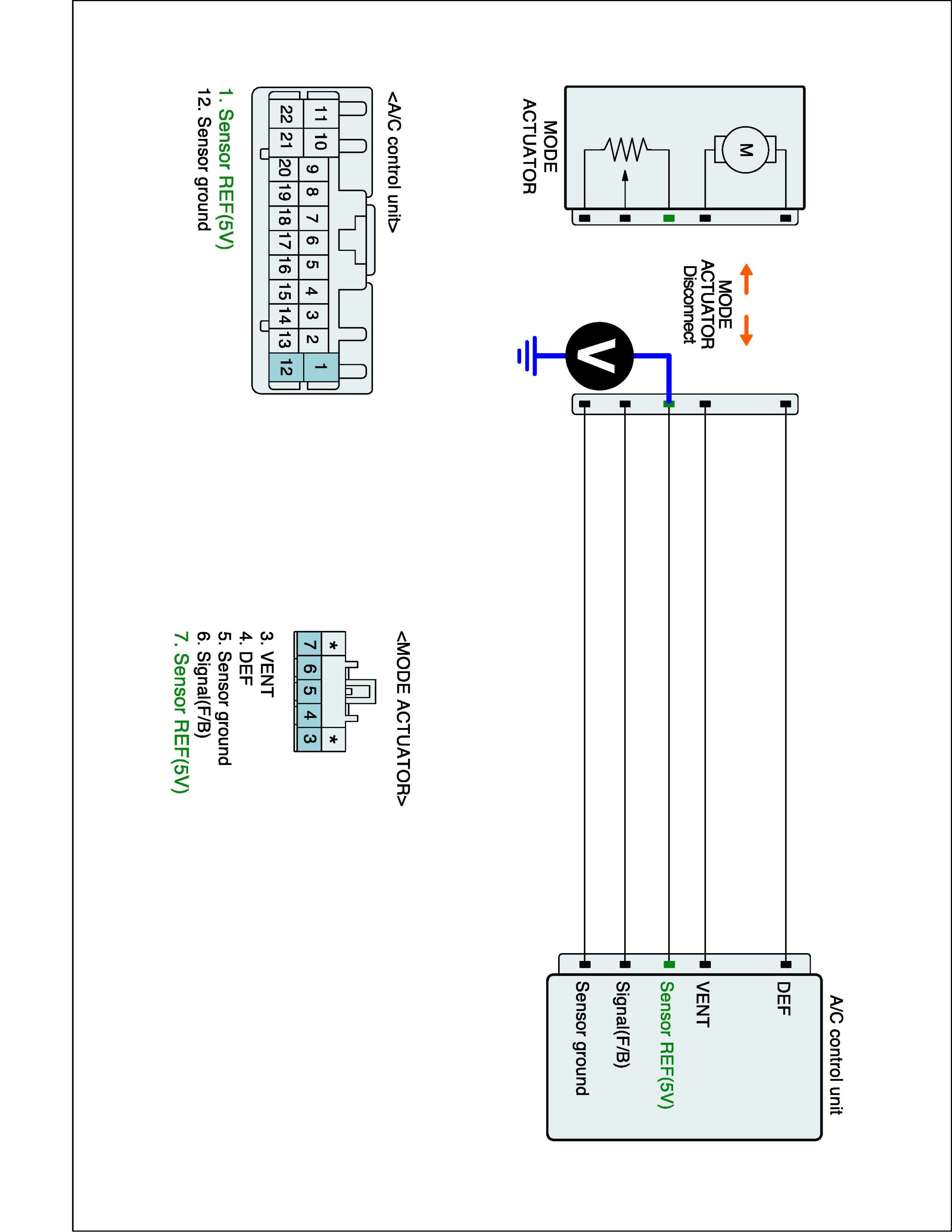 4. Measure voltage between Sensor REF (5V) terminal of Driver Direction actuator harness connector and chassis ground.