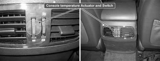Console temperature control switch is for controlling rear seat vent temperature. If the switch is controlled to warm position (Red Box direction), The vent air temperature is high. If switch is moved to Cool (Blue box direction), The vent air temperature is low.