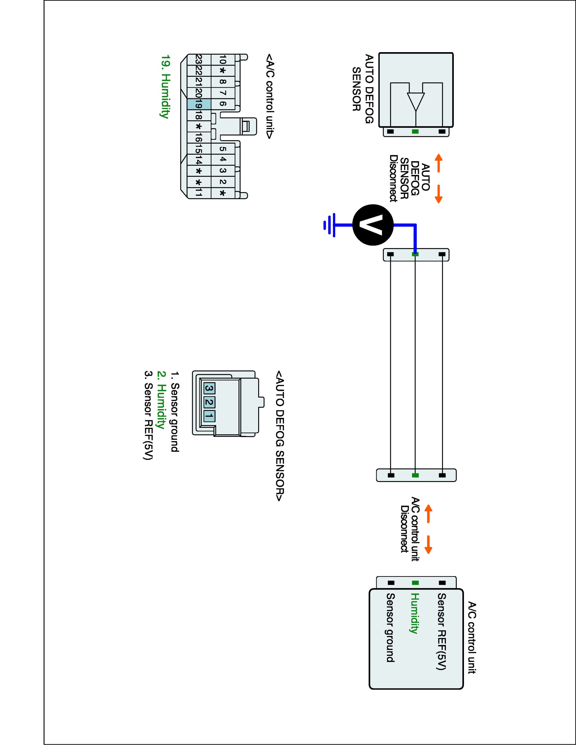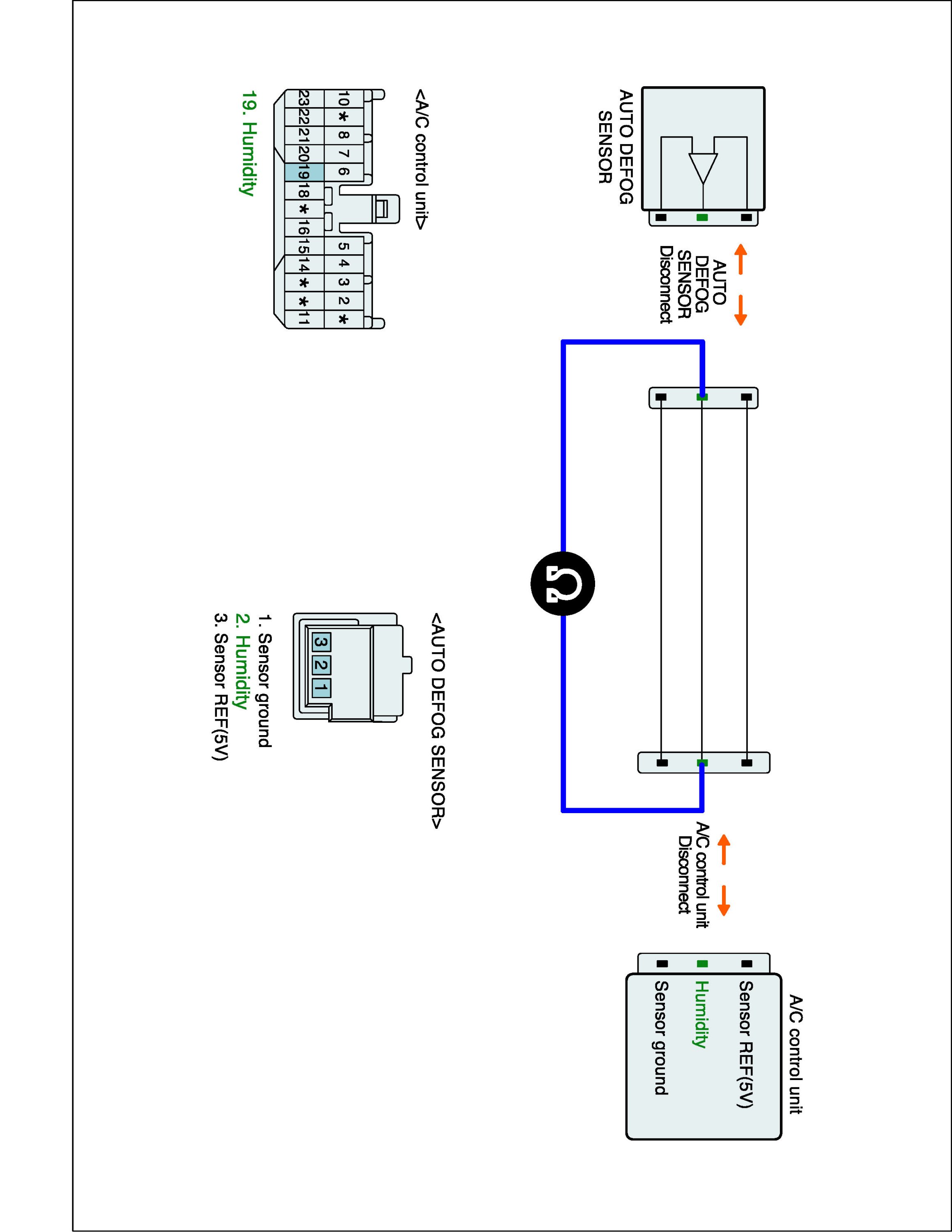 4. Measure voltage between Signal terminal of Auto Defog sensor harness connector and chassis ground.