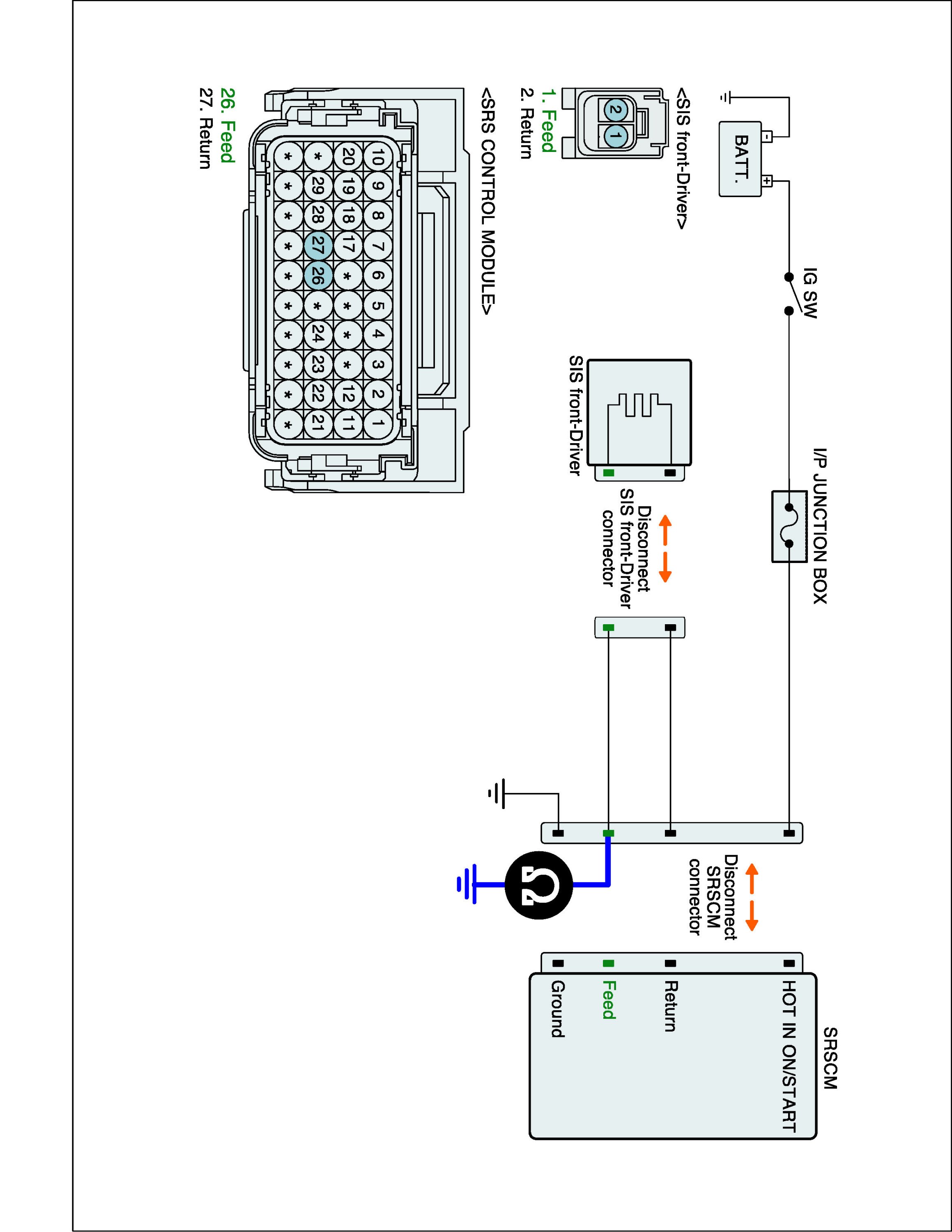 3. Disconnect DSIS connector and SRSCM main harness connector.