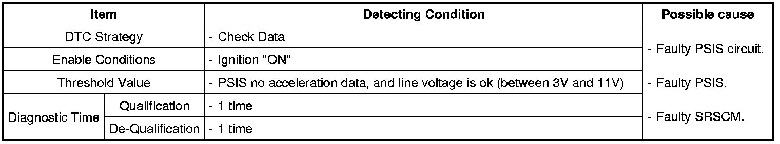 The SRSCM sets DTC B1410 if there is any error in communication between PSIS and SRSCM.