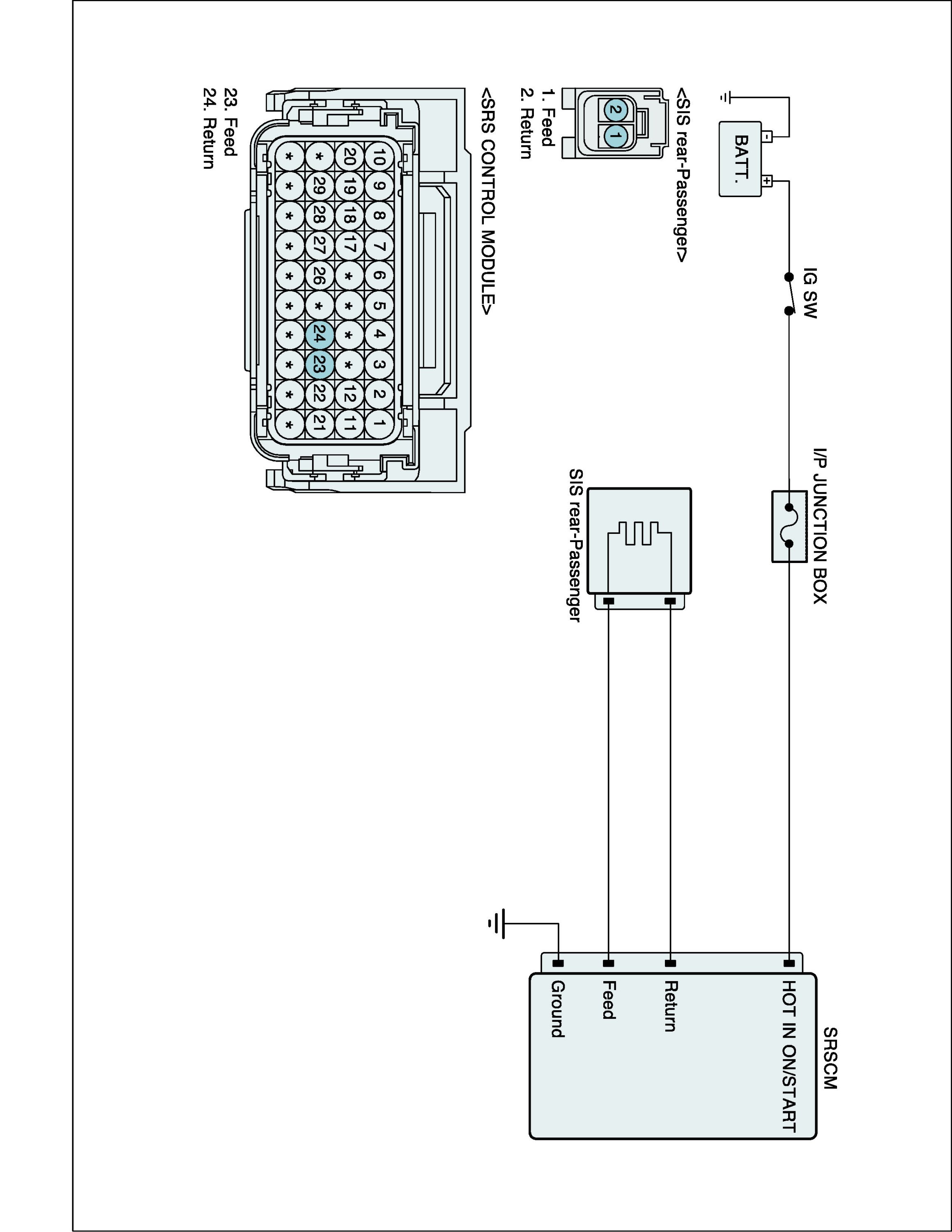 When SIS delivers collision signal to SRSCM, SRSCM checks if safing sensor located in SRSCM detects collusion. and if both SIS and safing sensor detects collision simultaneously, SRSCM operates side air bag.