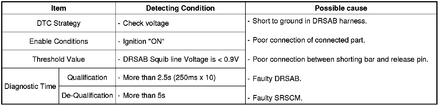 The SRSCM sets DTC B1431 if there is a short to ground in DRSAB harness.