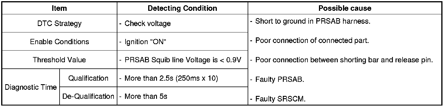 The SRSCM sets DTC B1435 if there is a short to ground in PRSAB harness.