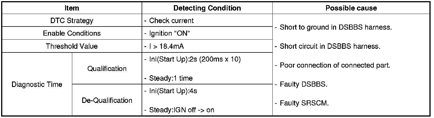 The SRSCM sets DTC B1512 if there is a short or short to ground in DSBBS harness.