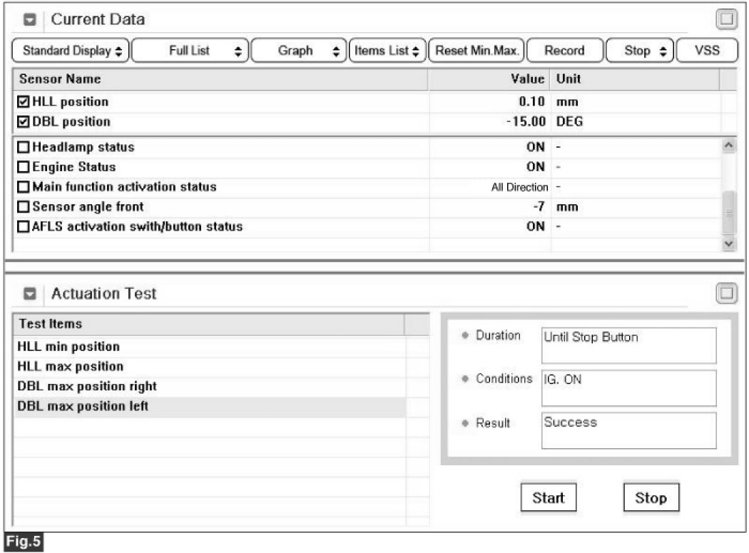 4. Check the operation of "HLL position and DBL position" use Actuation test.