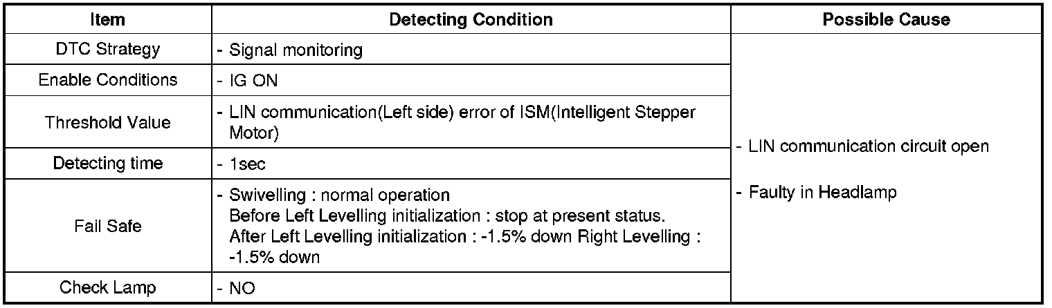 AFLS ECU set this code If critical faulty in LIN communication for ISM (Intelligent Stepper Motor) of left side headlamp.