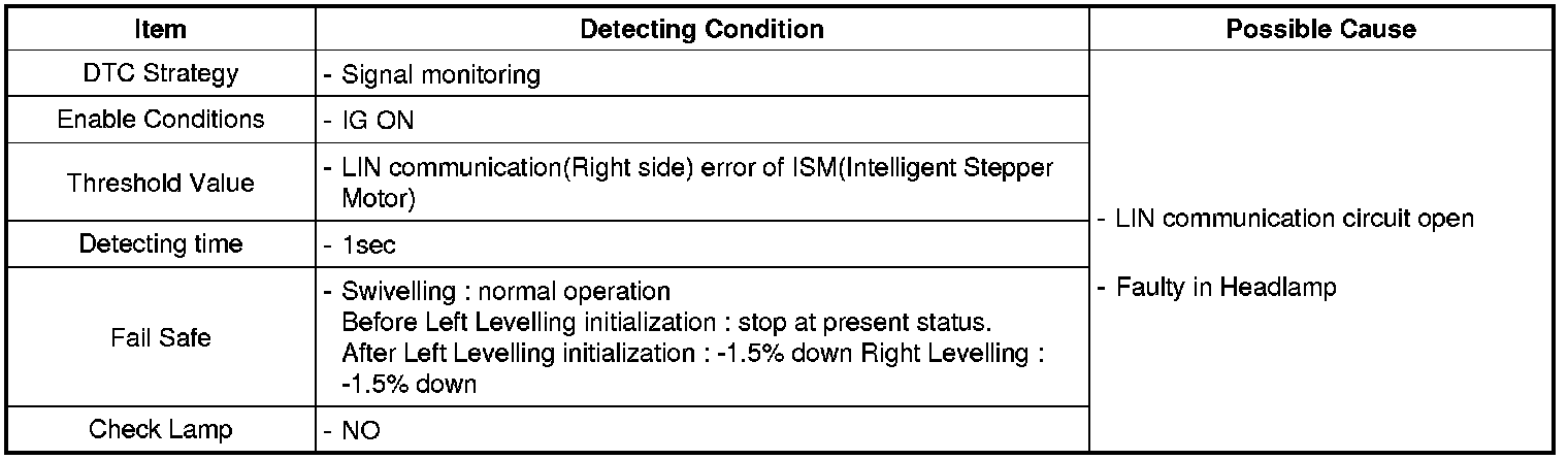 AFLS ECU set this code If critical faulty in LIN communication for ISM (Intelligent Stepper Motor) of right side headlamp.