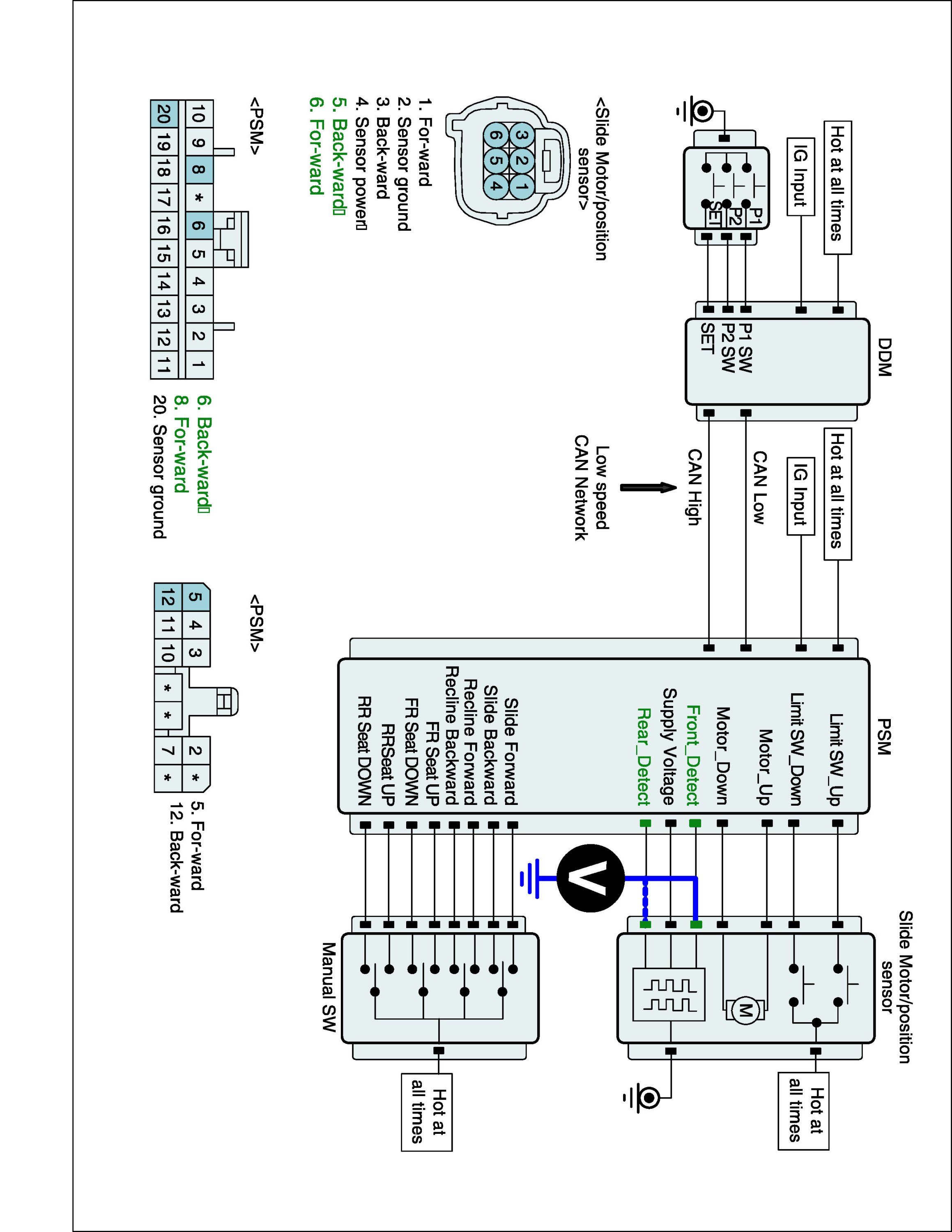 2. Measure the signal voltage of "Seat Slide Motor / Sensor" with pressing the Recline switch.