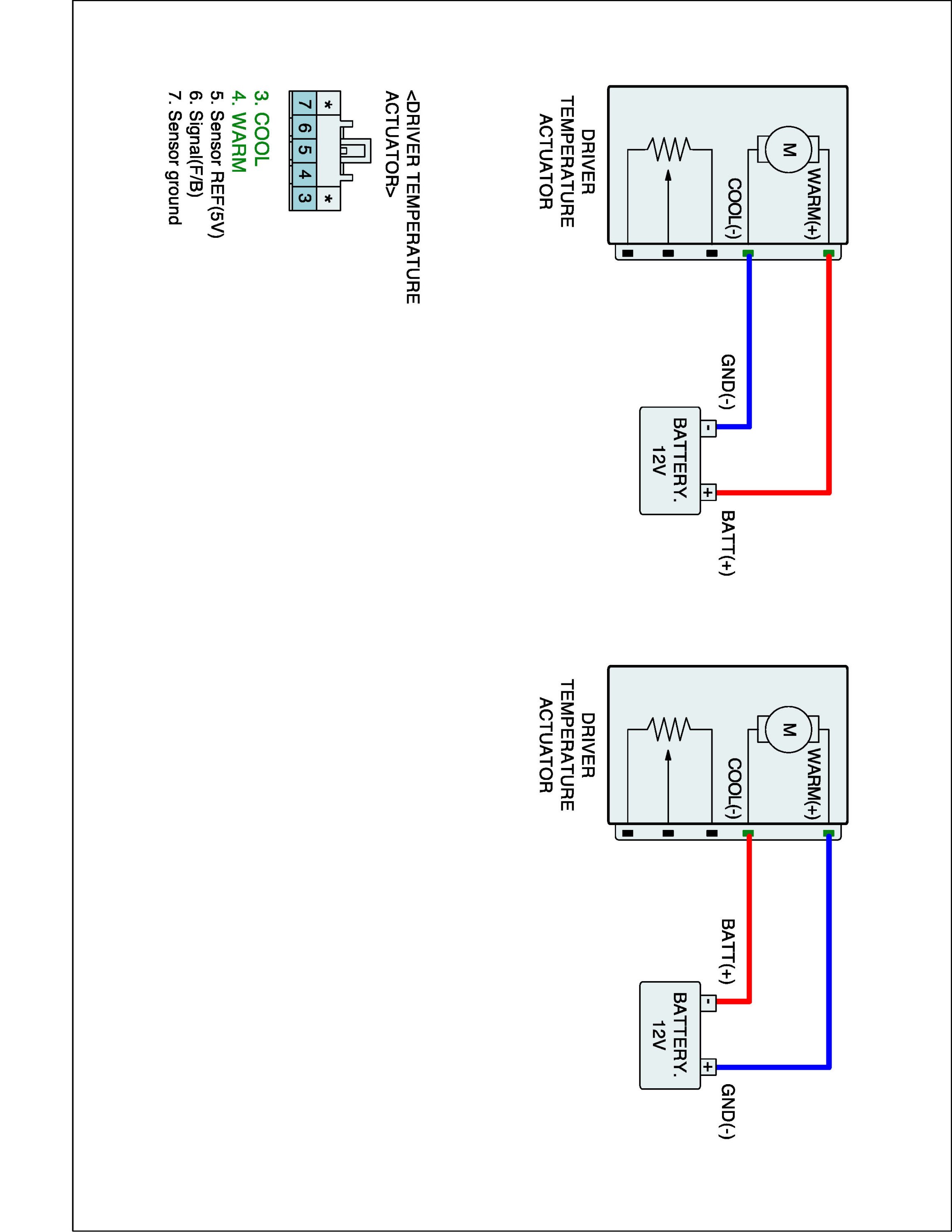 5. Verify that the temperature actuator operates to the warm position with reverse connecting. (WARM (+) and COOL (-) ). (Component side)