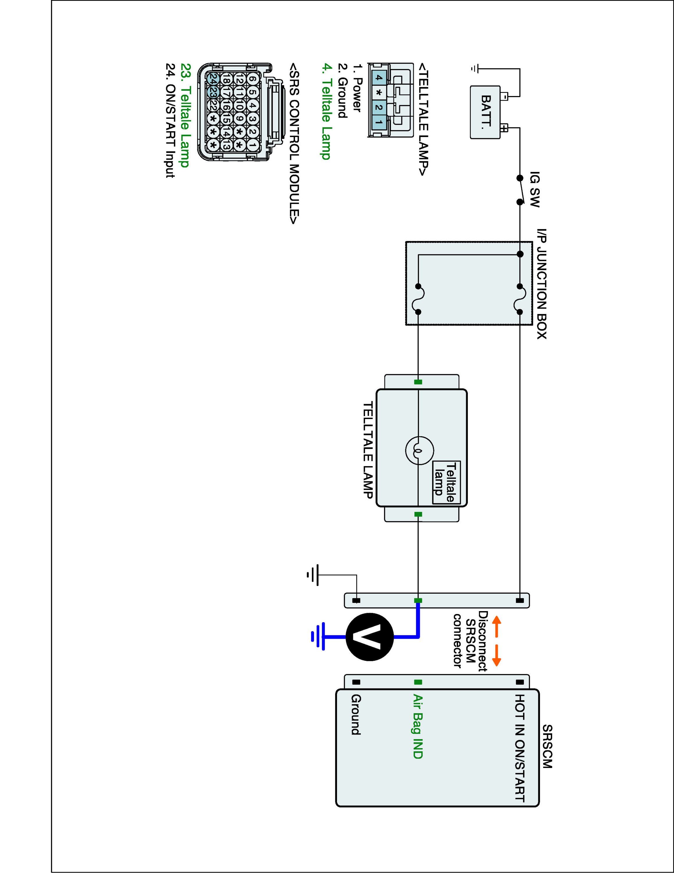 5. Measure voltage between Telltale lamp terminal of the SRSCM harness connector and chassis ground.