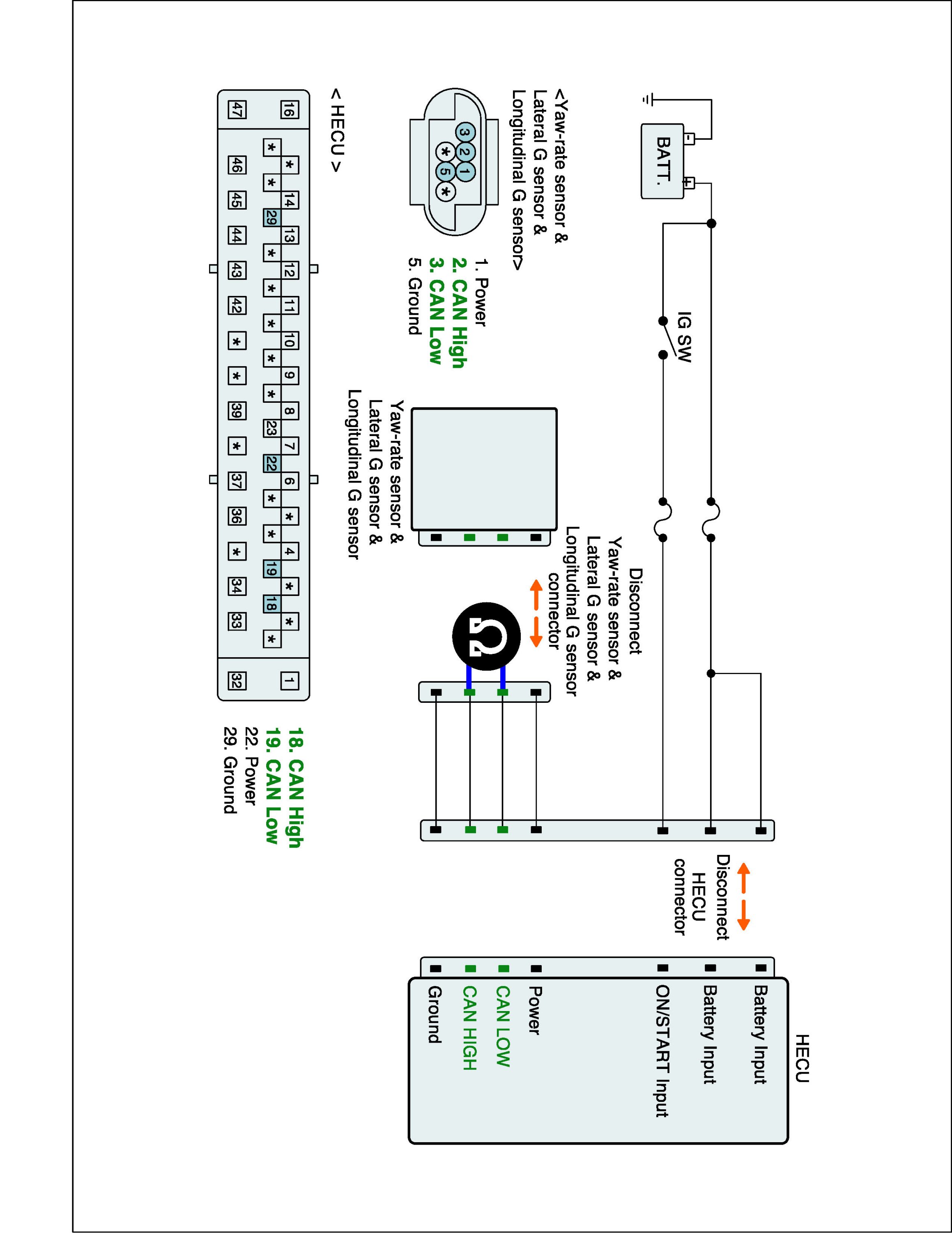 2. Disconnect Yaw-rate & Lateral G & Longitudinal G sensor connector and HECU connector.