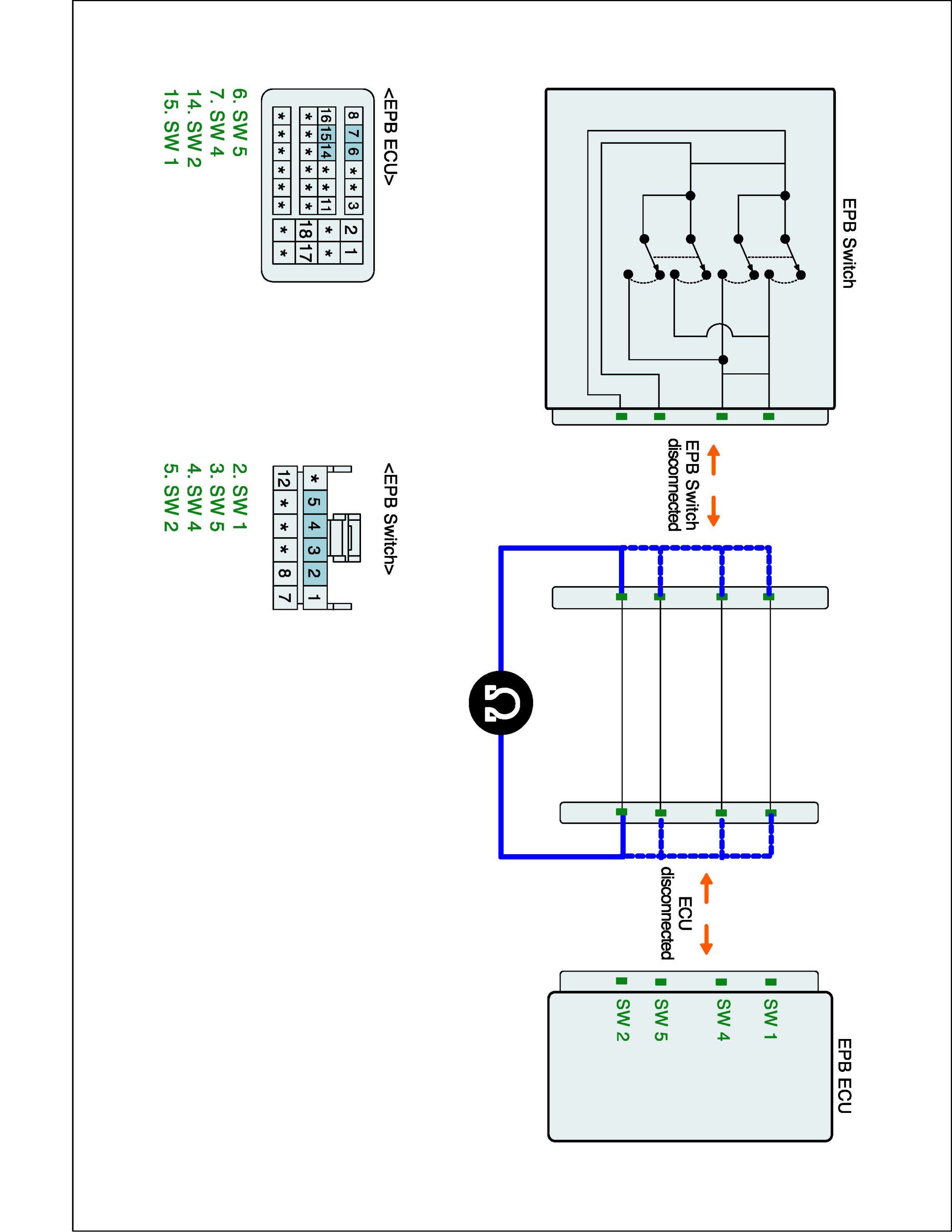 2. Disconnect EPB switch connector and EPB ECU connector.