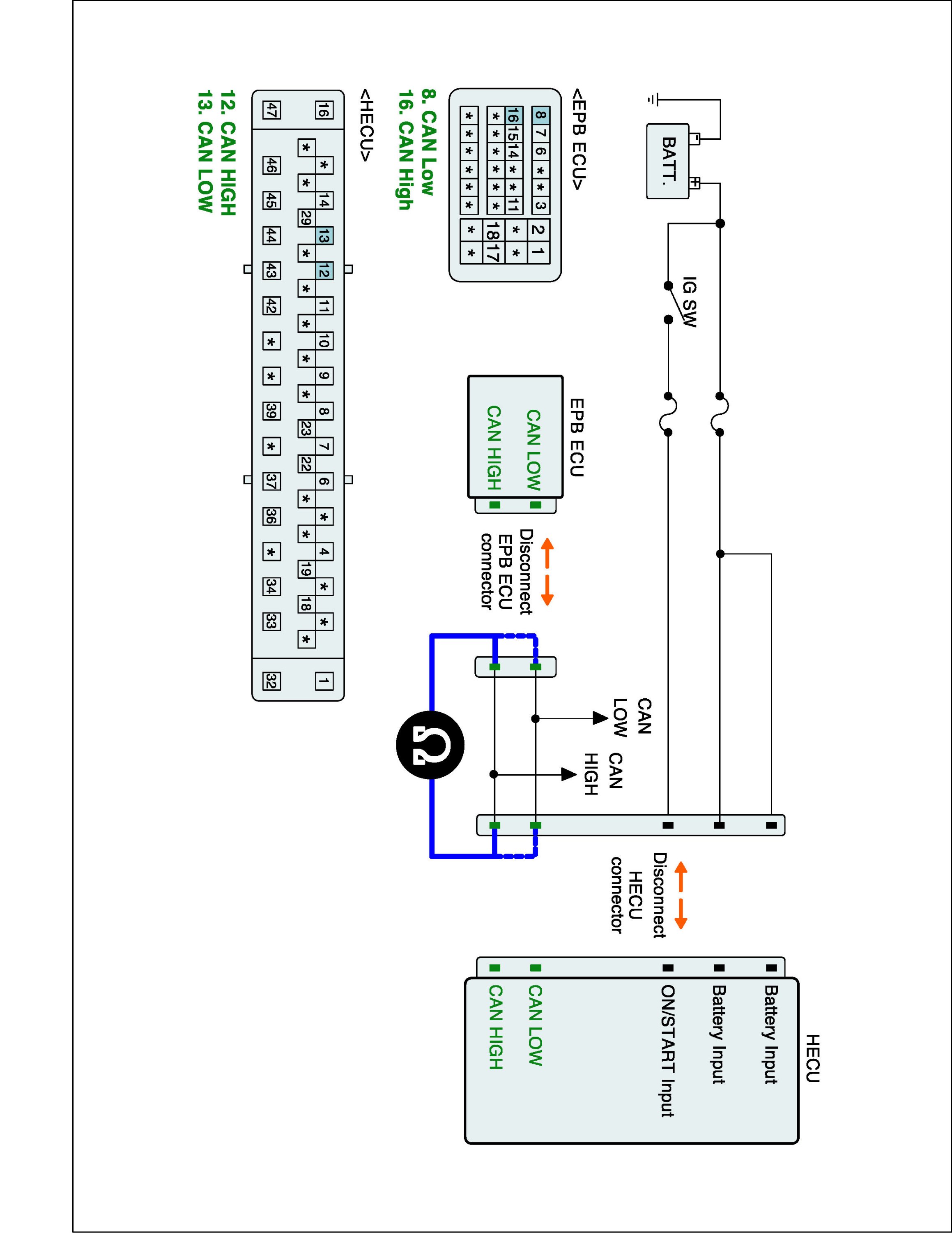 2. Disconnect EPB ECU connector and HECU connector.