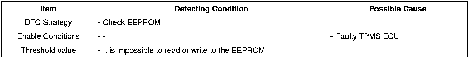 If the TPMS ECU has a problem with reading or writing to EEPROM, this DTC is set.