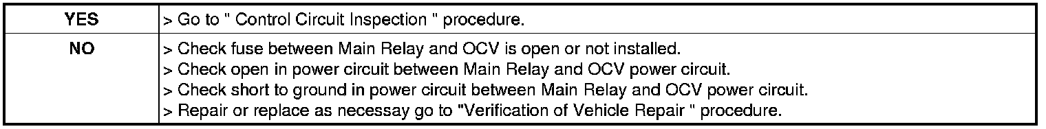 3. Measure voltage between power terminal of OCV harness connector and chassis ground.