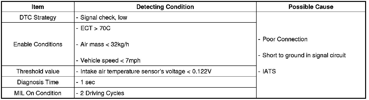 If measured temperature is lower than the maximum threshold value during 1 sec, ECM sets DTC P0112.