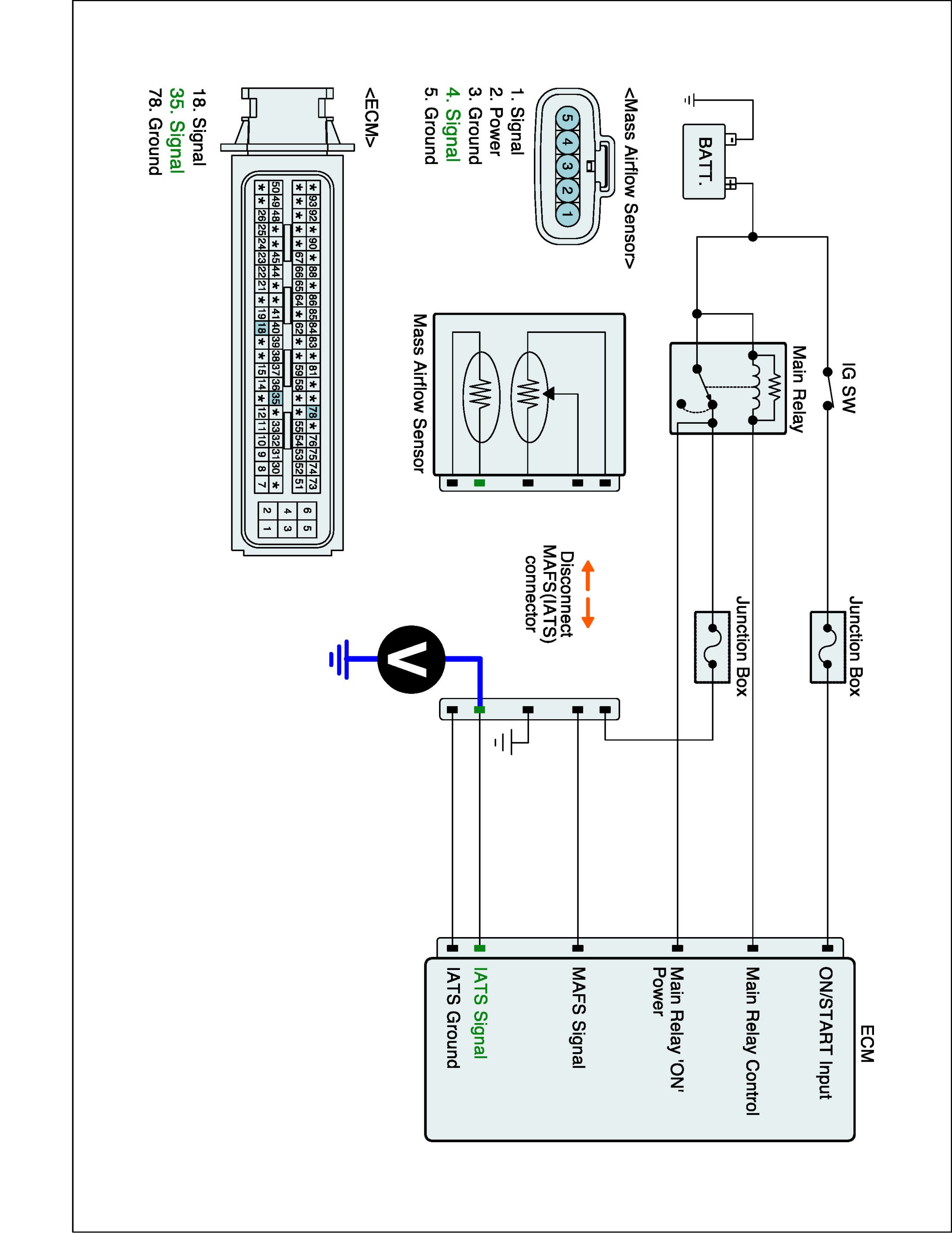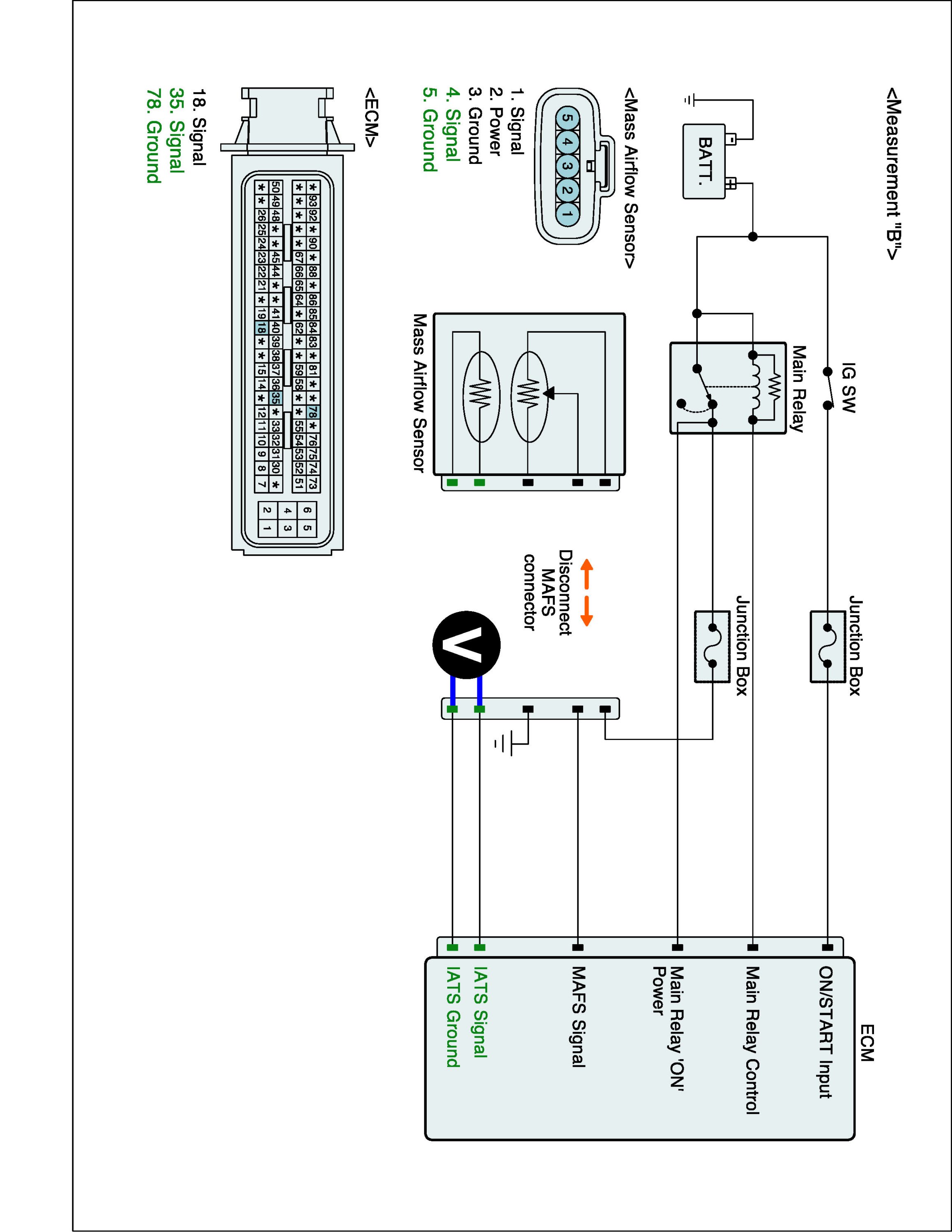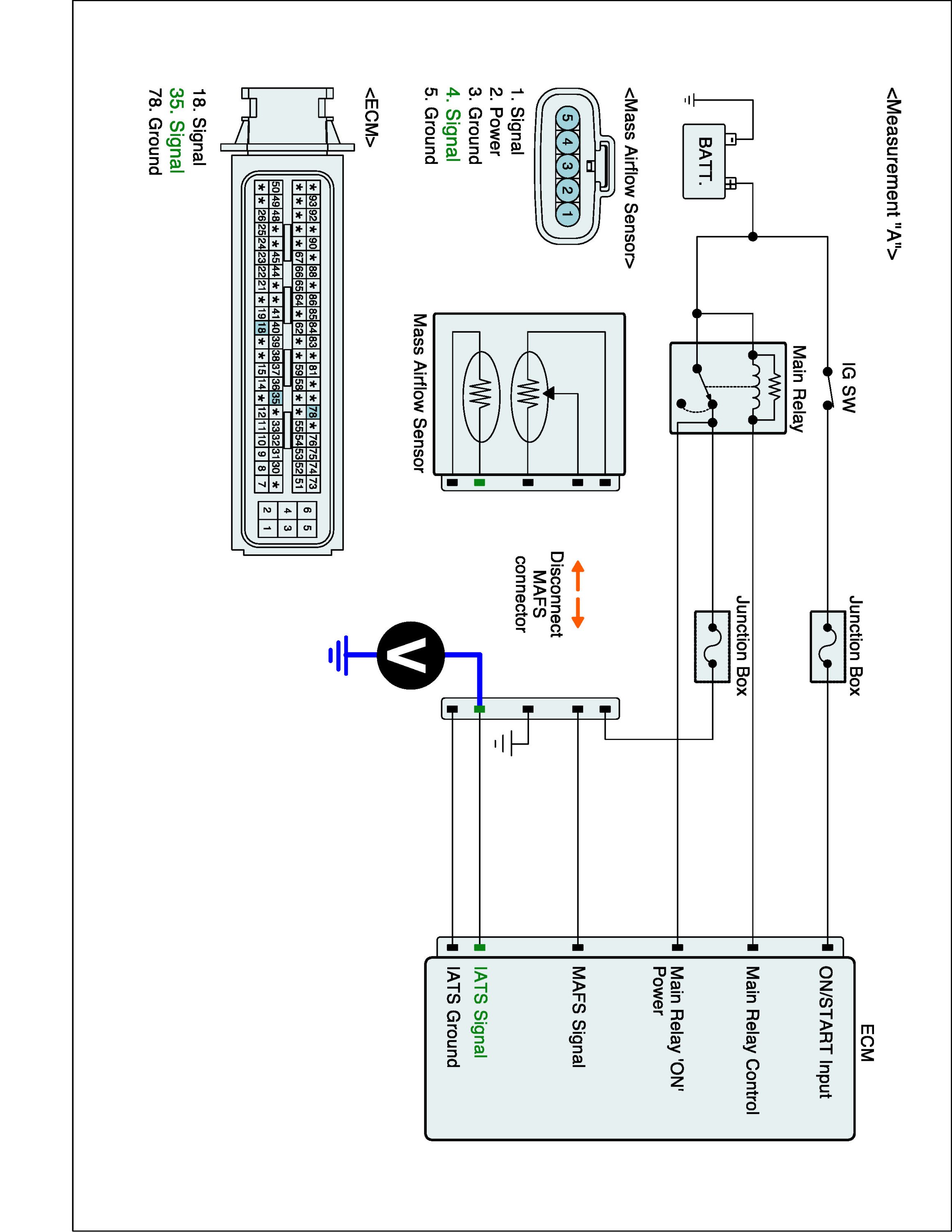 2. Measure resistance between signal terminal of IATS harness connector and power terminal of MAFS harness connector.