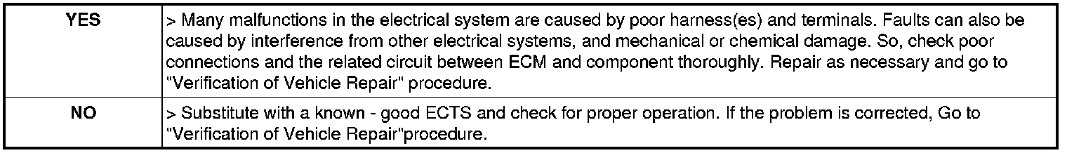 2. Measure resistance between signal and ground terminals of ECTS connector after checking out the temperature of ECTS with scantool (Component Side)