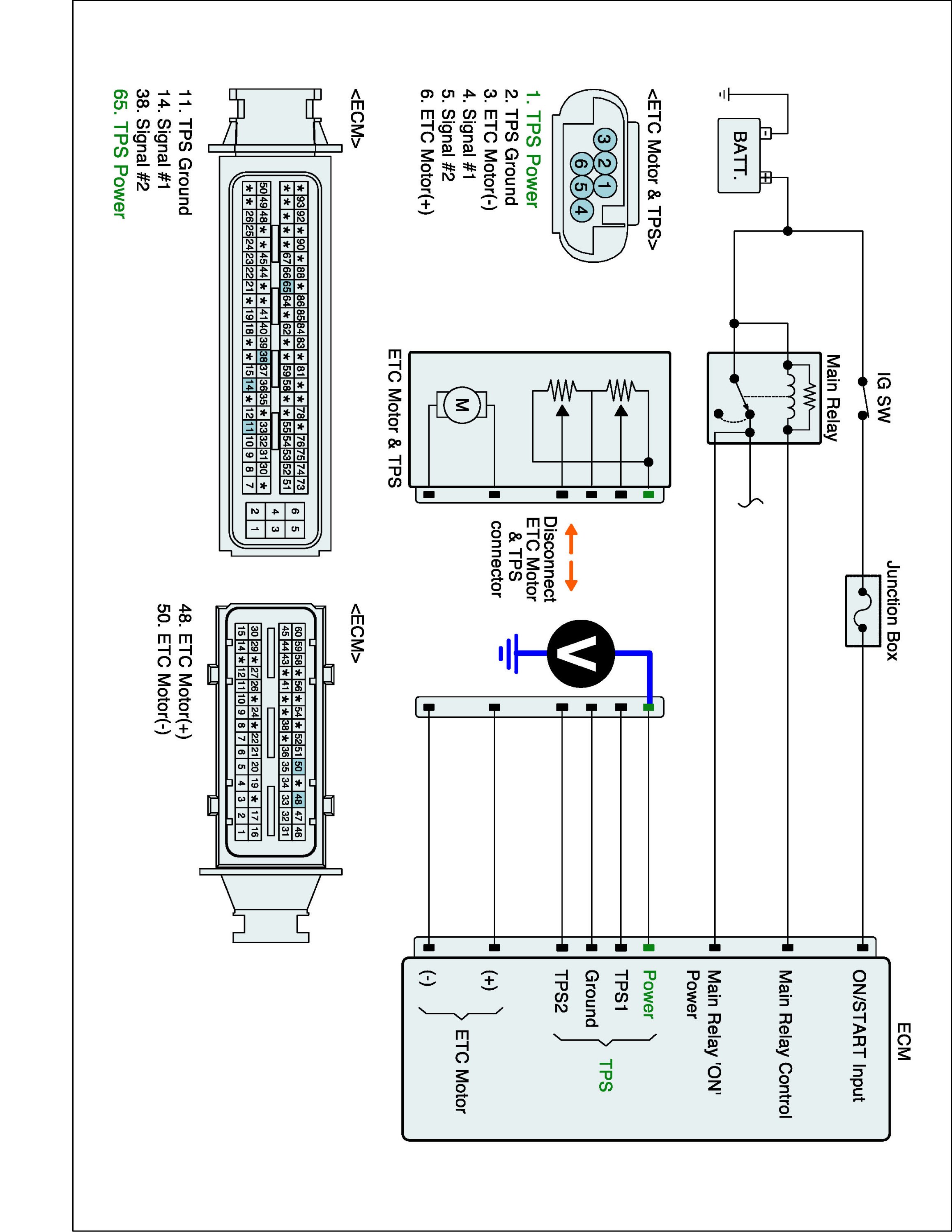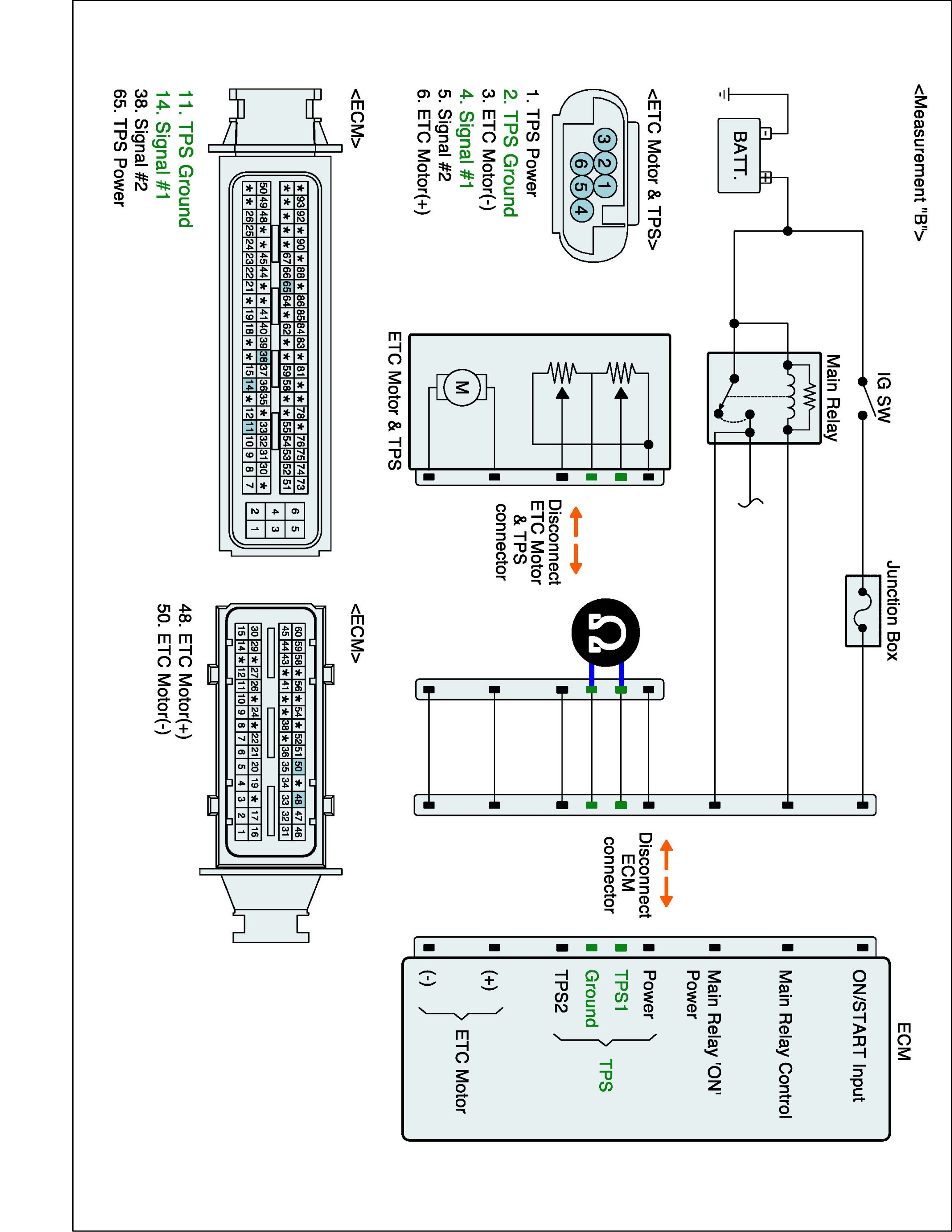 1. IG "OFF" and disconnect ETC Motor & TPS connector and ECM connector.