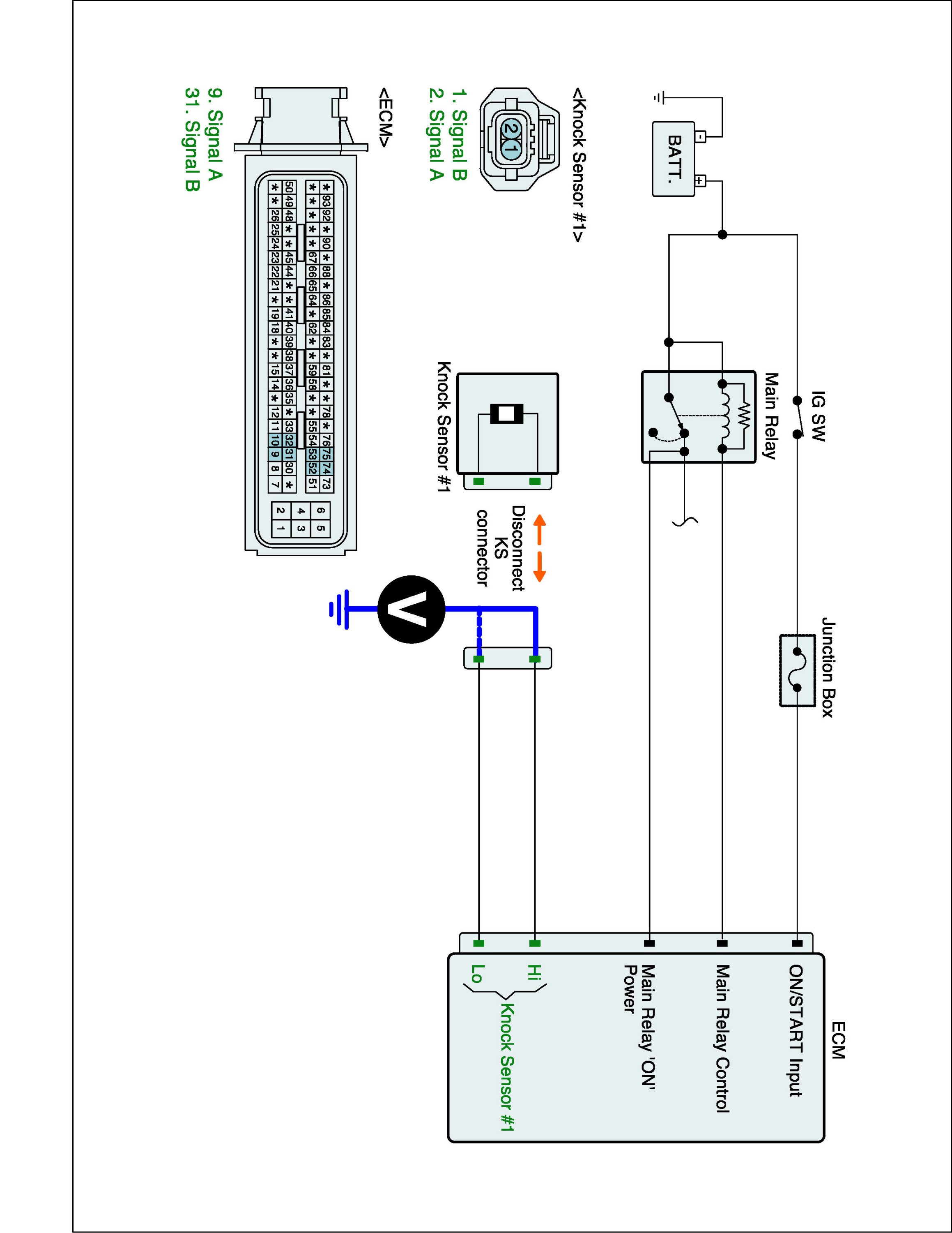 4. Measure voltage between high signal terminal of knock sensor harness connector and chassis ground.