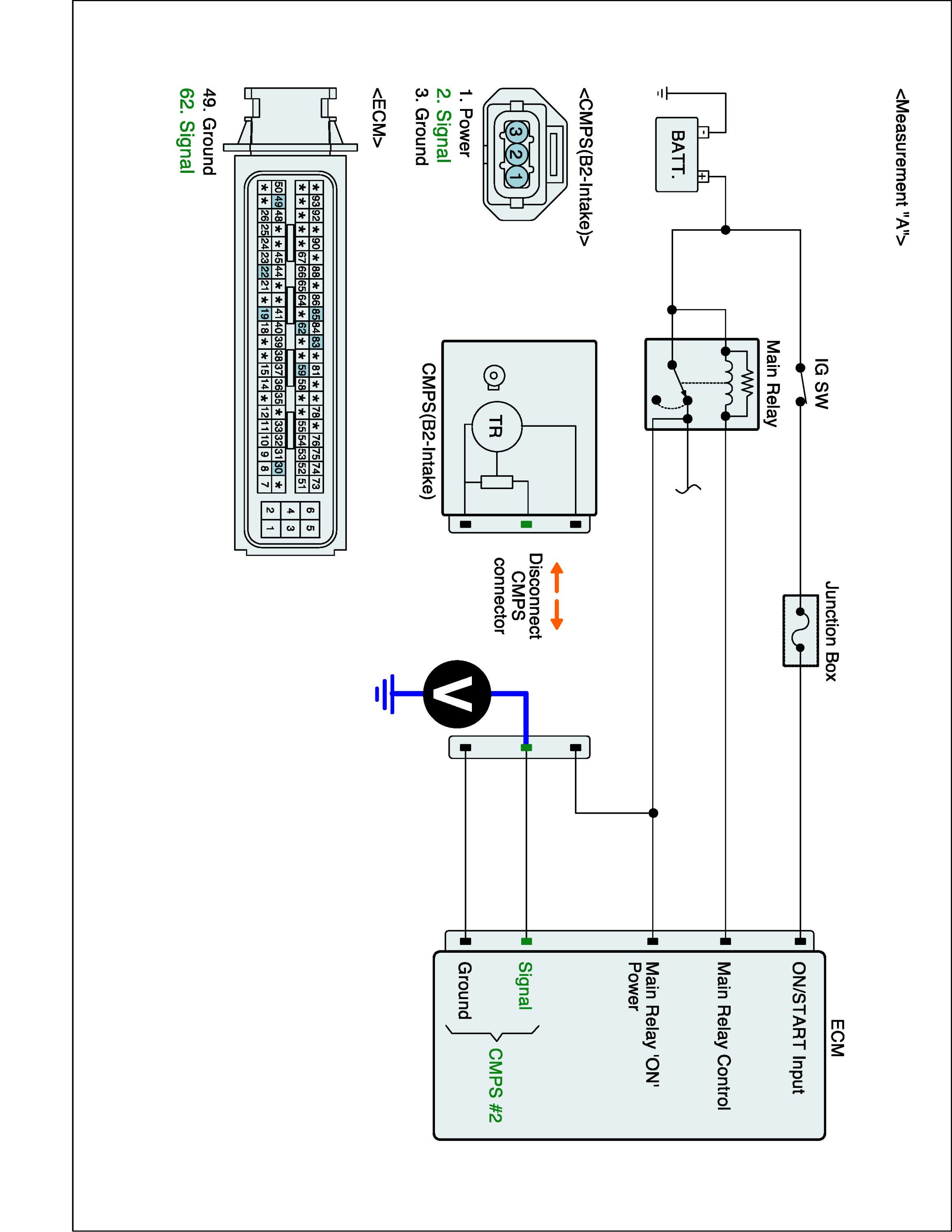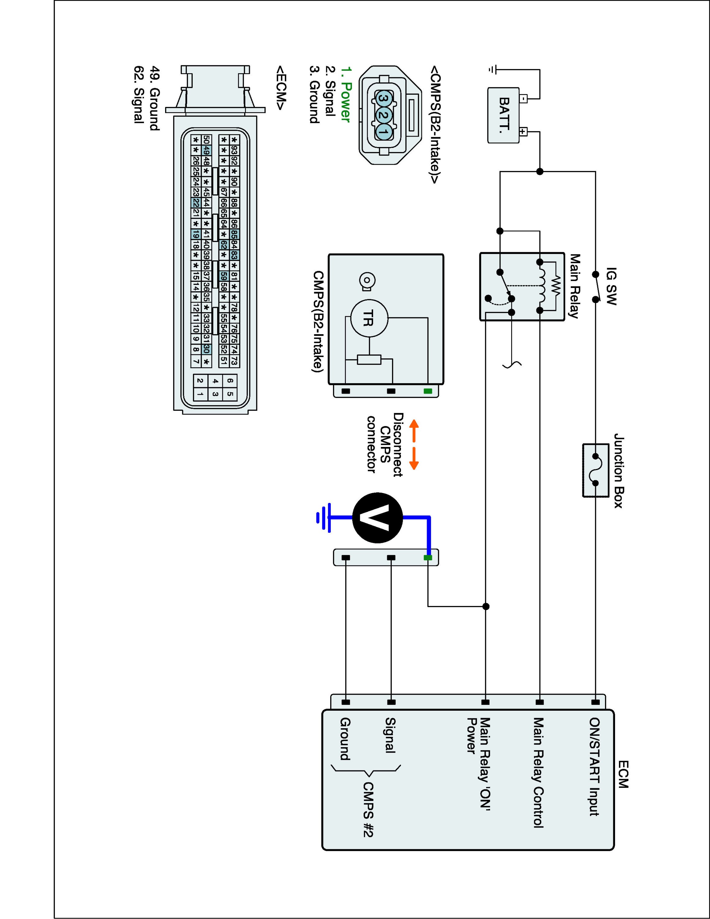 1. IG "OFF" and disconnect CMPS (B2-intake) connector and then IG "ON".