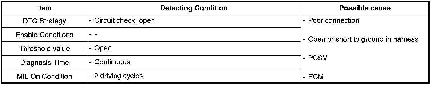 If there is Open in PCSV circuit, ECM sets DTC P0444.