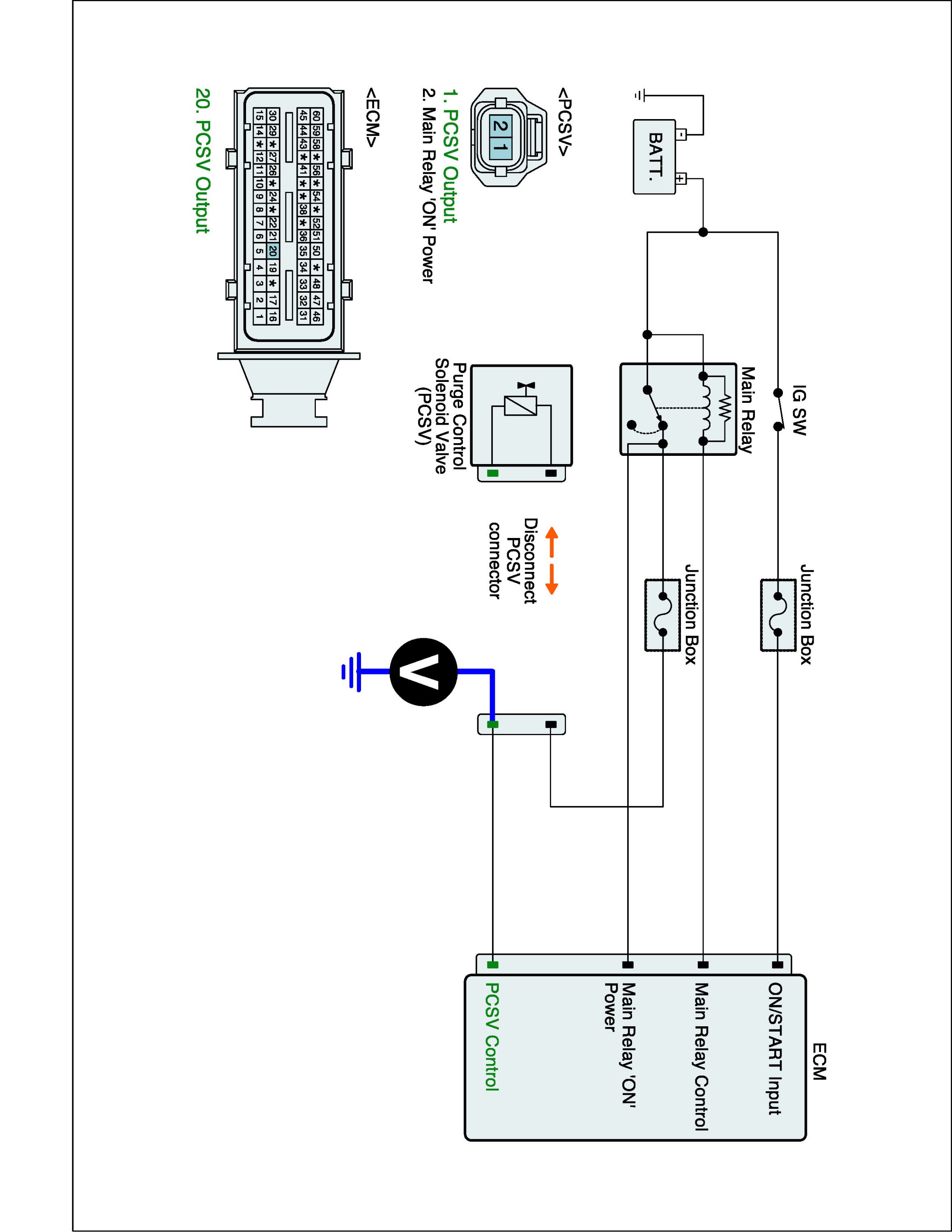 1. IG "OFF" and disconnect PCSV connector.