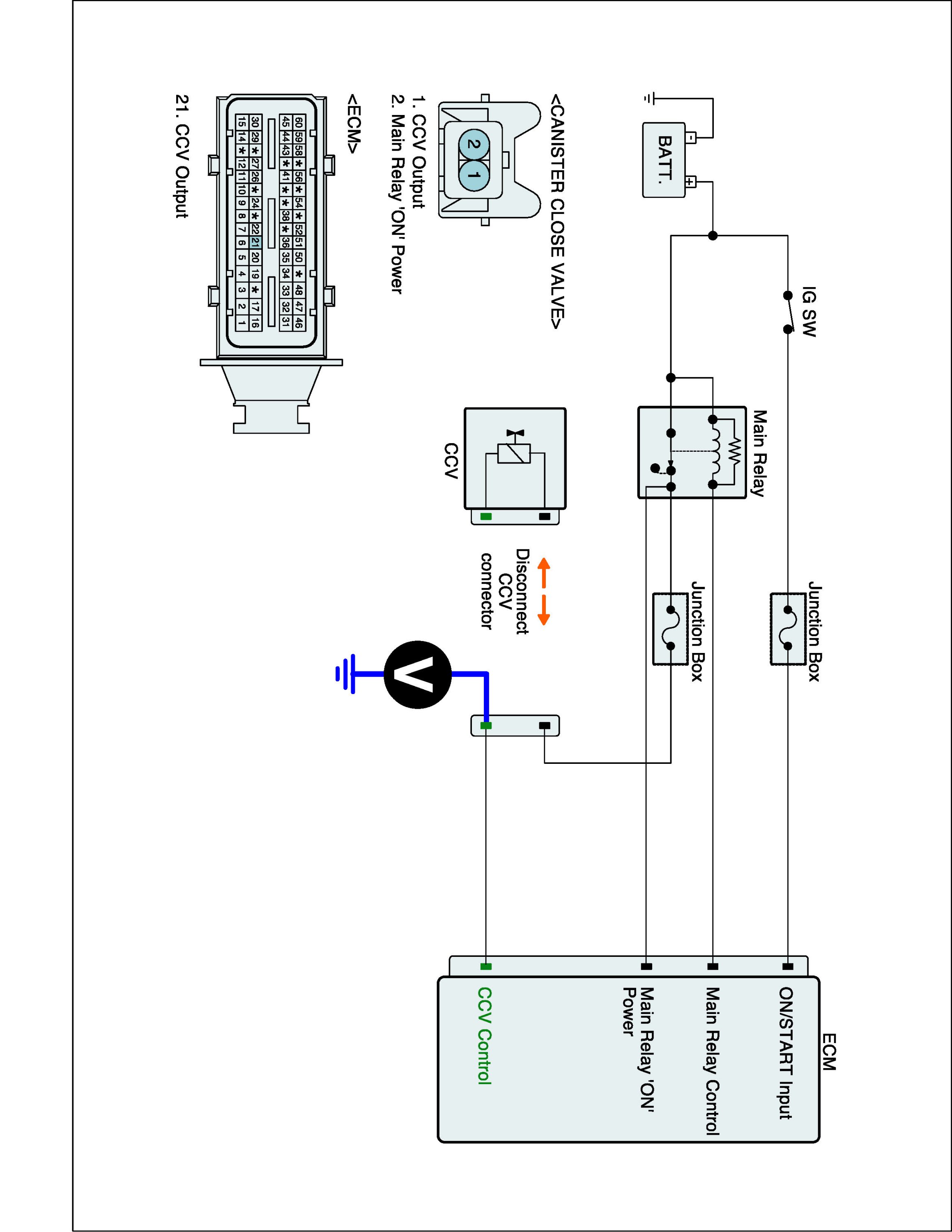 3. Measure voltage between control terminal of CCV harness connector and chassis ground.