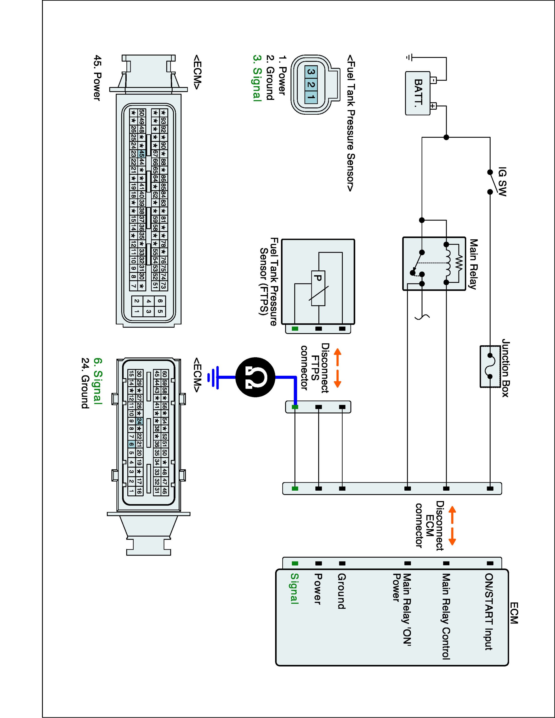 1. IG "OFF" and disconnect FTPS connector and ECM connector.